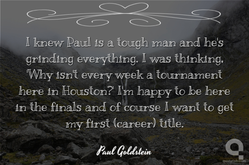 I knew Paul is a tough man and he's grinding everything. I was thinking, 'Why isn't every week a tournament here in Houston?' I'm happy to be here in the finals and of course I want to get my first (career) title.