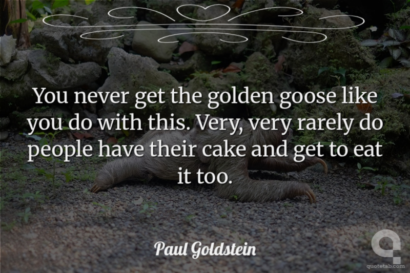 You never get the golden goose like you do with this. Very, very rarely do people have their cake and get to eat it too.