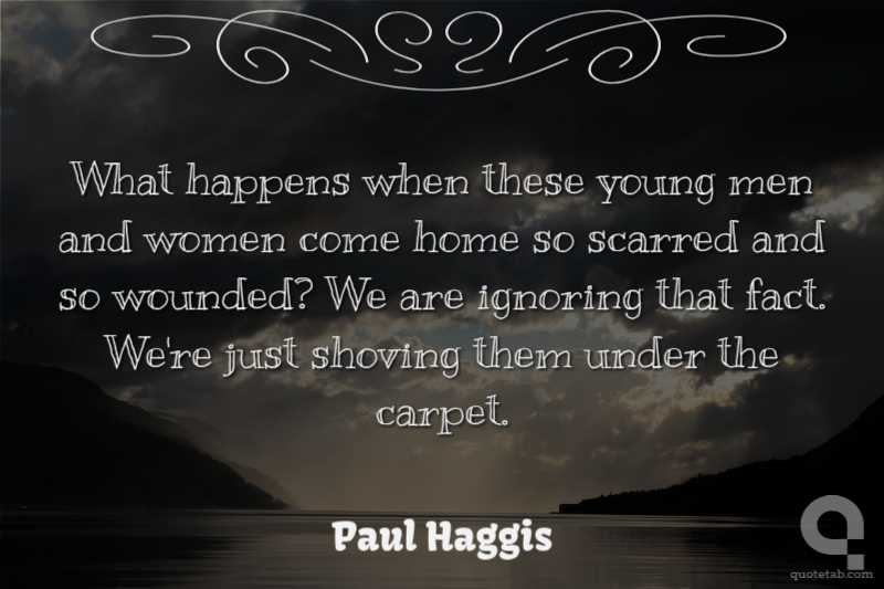 What happens when these young men and women come home so scarred and so wounded? We are ignoring that fact. We're just shoving them under the carpet.