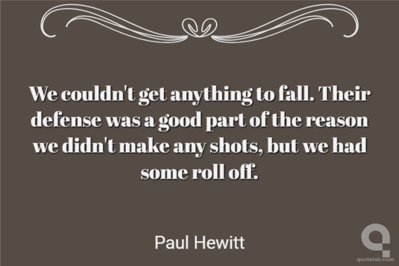 We couldn't get anything to fall. Their defense was a good part of the reason we didn't make any shots, but we had some roll off.