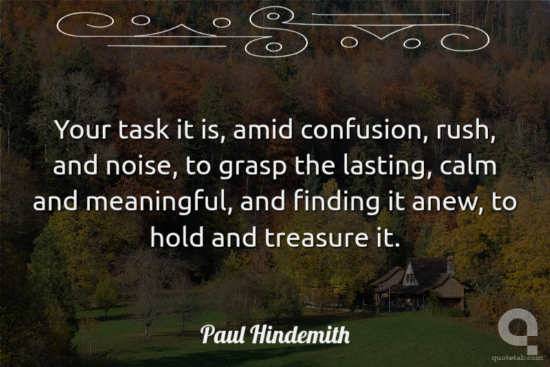 Your task it is, amid confusion, rush, and noise, to grasp the lasting, calm and meaningful, and finding it anew, to hold and treasure it.