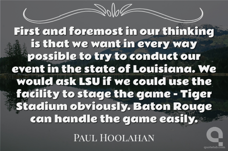 First and foremost in our thinking is that we want in every way possible to try to conduct our event in the state of Louisiana. We would ask LSU if we could use the facility to stage the game - Tiger Stadium obviously. Baton Rouge can handle the game easily.
