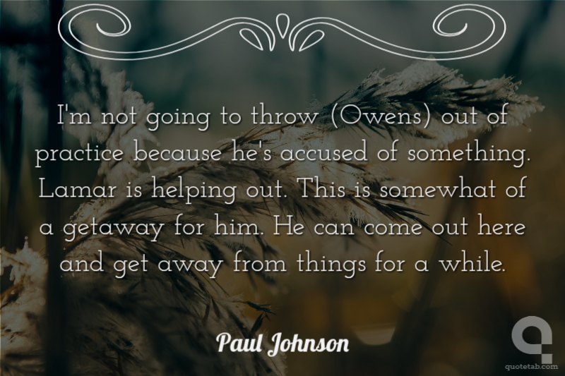 I'm not going to throw (Owens) out of practice because he's accused of something. Lamar is helping out. This is somewhat of a getaway for him. He can come out here and get away from things for a while.