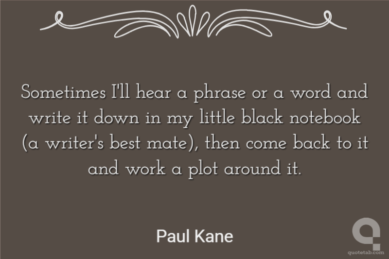 Sometimes I'll hear a phrase or a word and write it down in my little black notebook (a writer's best mate), then come back to it and work a plot around it.