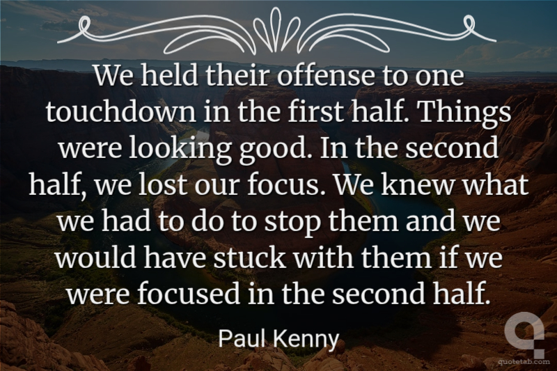 We held their offense to one touchdown in the first half. Things were looking good. In the second half, we lost our focus. We knew what we had to do to stop them and we would have stuck with them if we were focused in the second half.