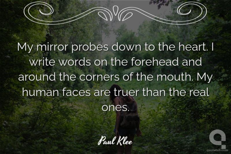 My mirror probes down to the heart. I write words on the forehead and around the corners of the mouth. My human faces are truer than the real ones.