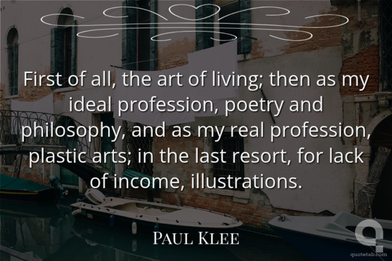 First of all, the art of living; then as my ideal profession, poetry and philosophy, and as my real profession, plastic arts; in the last resort, for lack of income, illustrations.