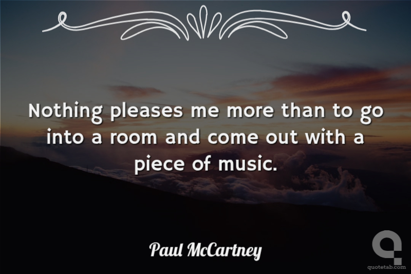 Nothing pleases me more than to go into a room and come out with a piece of music.