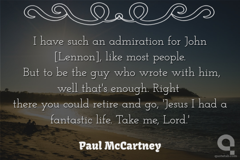 I have such an admiration for John [Lennon], like most people. But to be the guy who wrote with him, well that's enough. Right there you could retire and go, 'Jesus I had a fantastic life. Take me, Lord.'