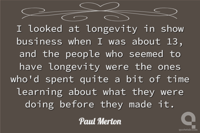 I looked at longevity in show business when I was about 13, and the people who seemed to have longevity were the ones who'd spent quite a bit of time learning about what they were doing before they made it.