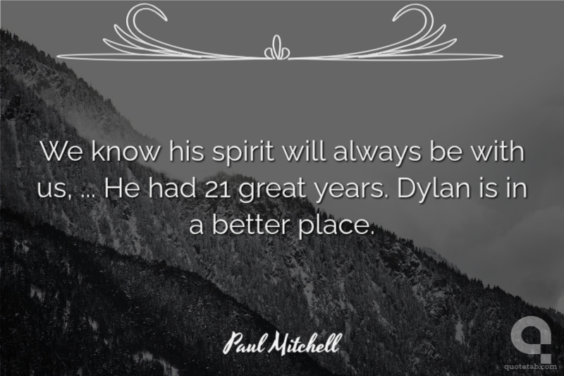 We know his spirit will always be with us, ... He had 21 great years. Dylan is in a better place.