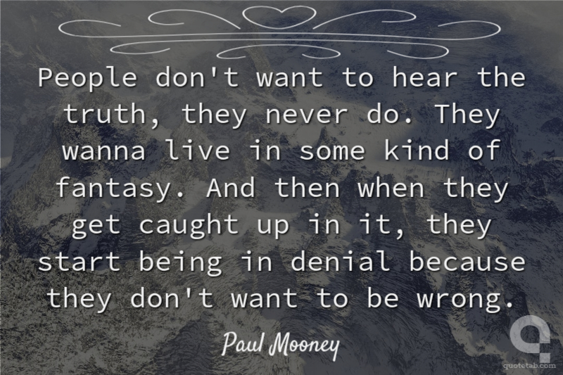 People don't want to hear the truth, they never do. They wanna live in some kind of fantasy. And then when they get caught up in it, they start being in denial because they don't want to be wrong.