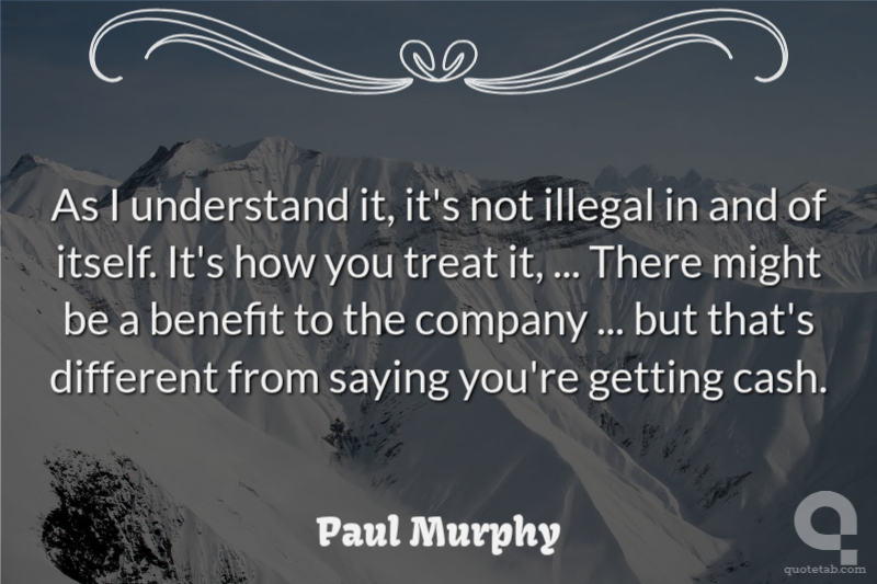 As I understand it, it's not illegal in and of itself. It's how you treat it, ... There might be a benefit to the company ... but that's different from saying you're getting cash.