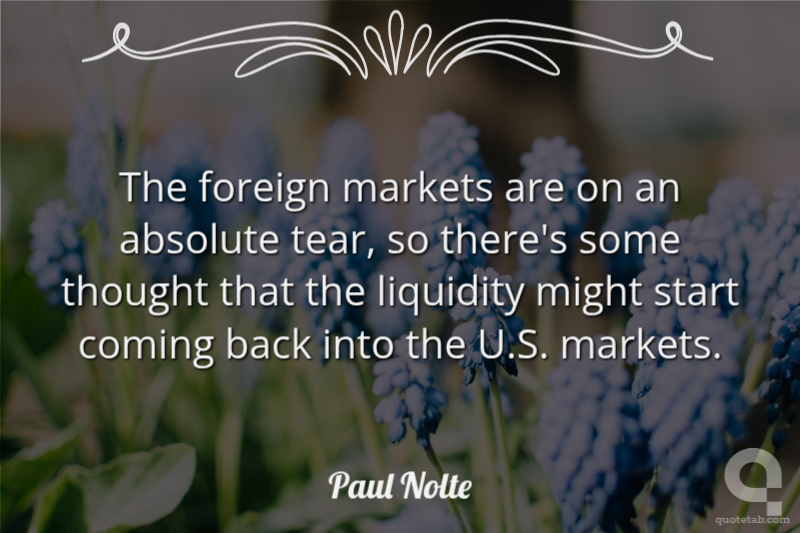 The foreign markets are on an absolute tear, so there's some thought that the liquidity might start coming back into the U.S. markets.