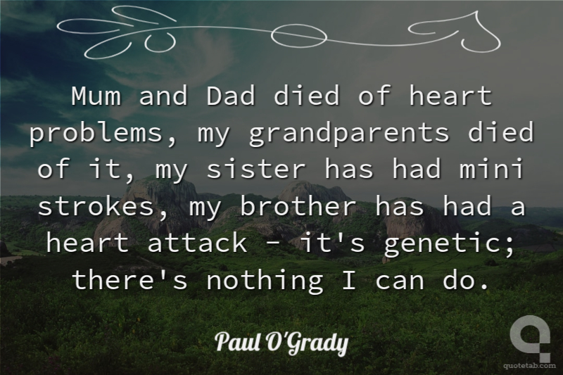 Mum and Dad died of heart problems, my grandparents died of it, my sister has had mini strokes, my brother has had a heart attack - it's genetic; there's nothing I can do.