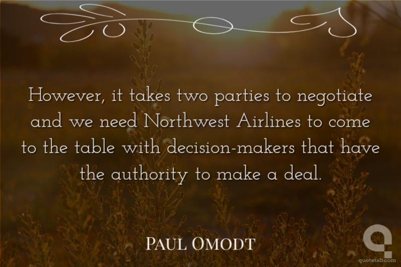 However, it takes two parties to negotiate and we need Northwest Airlines to come to the table with decision-makers that have the authority to make a deal.