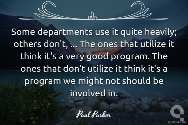Some departments use it quite heavily; others don't, ... The ones that utilize it think it's a very good program. The ones that don't utilize it think it's a program we might not should be involved in.
