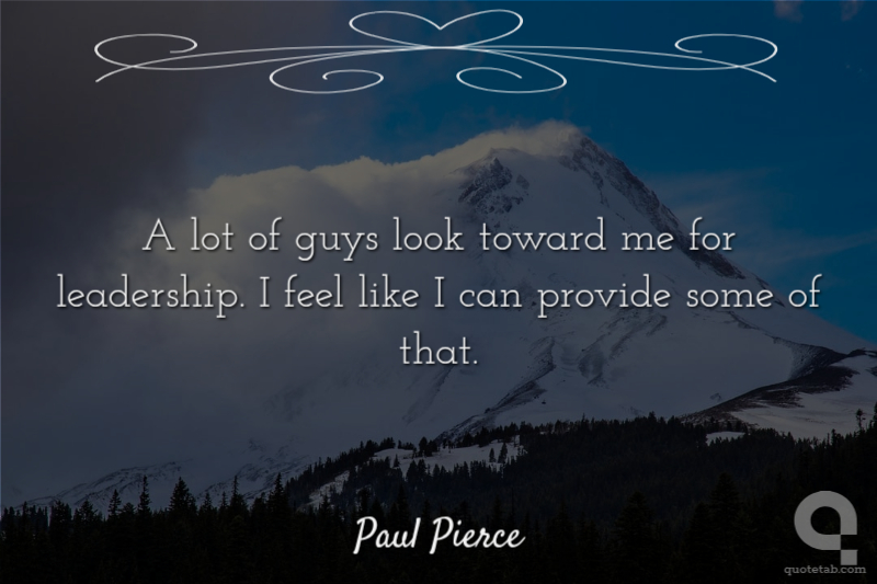 A lot of guys look toward me for leadership. I feel like I can provide some of that.