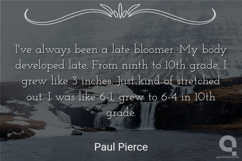 I've always been a late bloomer. My body developed late. From ninth to 10th grade, I grew like 3 inches. Just kind of stretched out. I was like 6-1, grew to 6-4 in 10th grade.