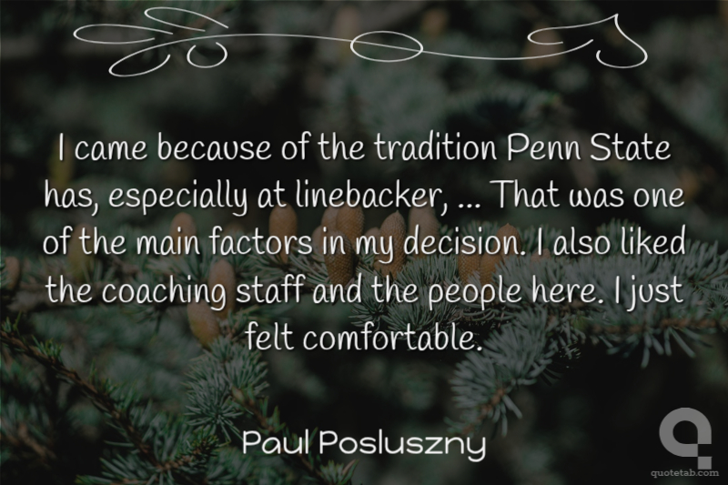 I came because of the tradition Penn State has, especially at linebacker, ... That was one of the main factors in my decision. I also liked the coaching staff and the people here. I just felt comfortable.