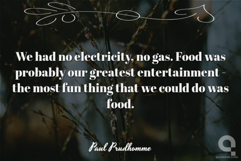 We had no electricity, no gas. Food was probably our greatest entertainment - the most fun thing that we could do was food.