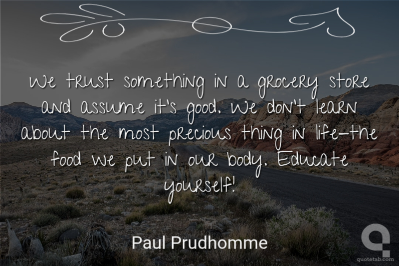We trust something in a grocery store and assume it's good. We don't learn about the most precious thing in life-the food we put in our body. Educate yourself!