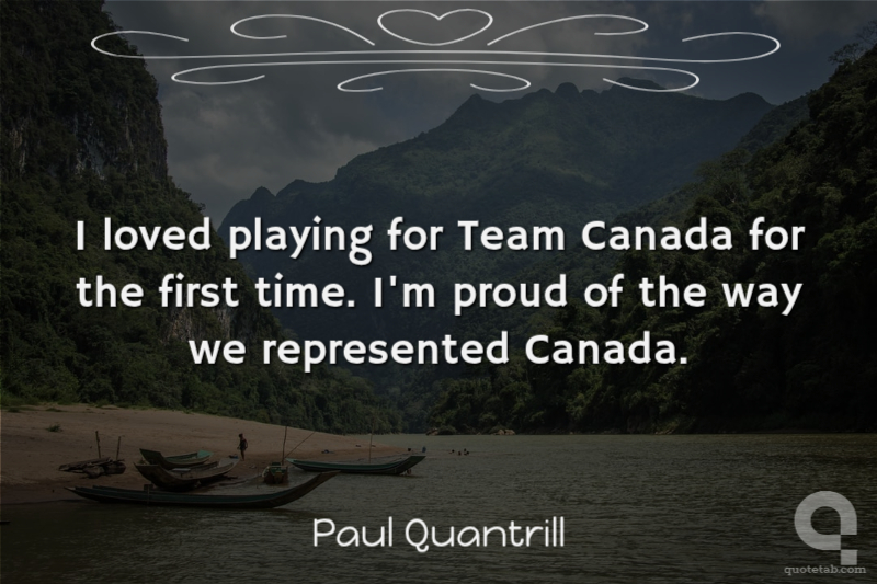 I loved playing for Team Canada for the first time. I'm proud of the way we represented Canada.