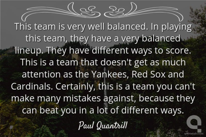 This team is very well balanced. In playing this team, they have a very balanced lineup. They have different ways to score. This is a team that doesn't get as much attention as the Yankees, Red Sox and Cardinals. Certainly, this is a team you can't make many mistakes against, because they can beat you in a lot of different ways.