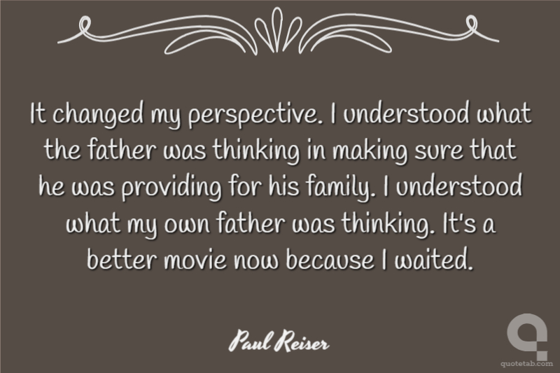 It changed my perspective. I understood what the father was thinking in making sure that he was providing for his family. I understood what my own father was thinking. It's a better movie now because I waited.