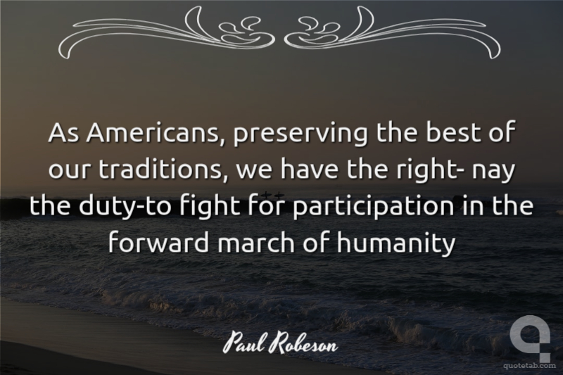 As Americans, preserving the best of our traditions, we have the right- nay the duty-to fight for participation in the forward march of humanity