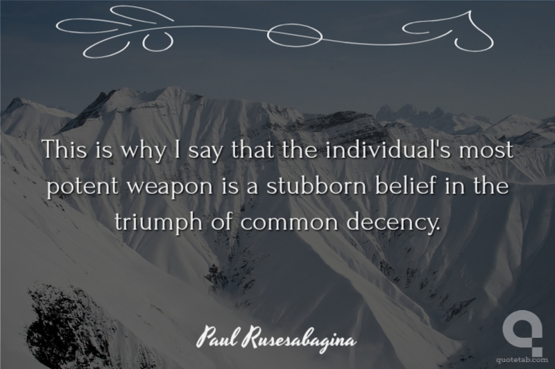 This is why I say that the individual's most potent weapon is a stubborn belief in the triumph of common decency.