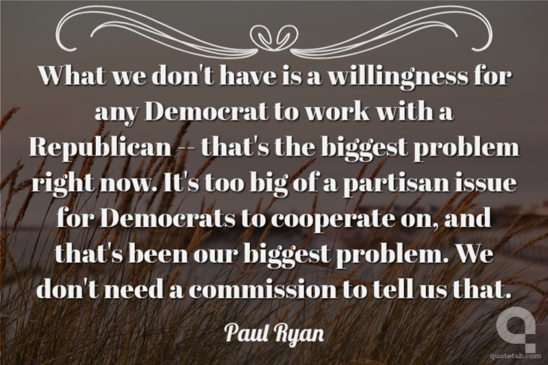 What we don't have is a willingness for any Democrat to work with a Republican -- that's the biggest problem right now. It's too big of a partisan issue for Democrats to cooperate on, and that's been our biggest problem. We don't need a commission to tell us that.