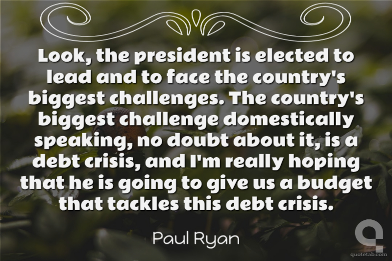 Look, the president is elected to lead and to face the country's biggest challenges. The country's biggest challenge domestically speaking, no doubt about it, is a debt crisis, and I'm really hoping that he is going to give us a budget that tackles this debt crisis.