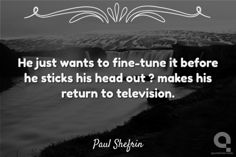 He just wants to fine-tune it before he sticks his head out ? makes his return to television.