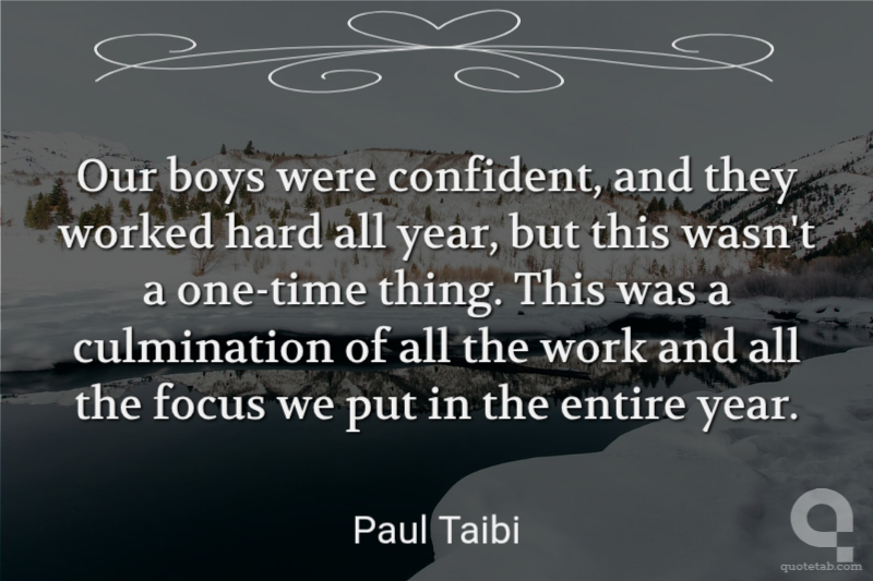 Our boys were confident, and they worked hard all year, but this wasn't a one-time thing. This was a culmination of all the work and all the focus we put in the entire year.