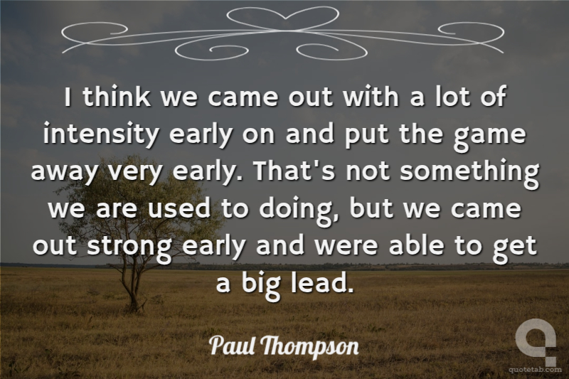 I think we came out with a lot of intensity early on and put the game away very early. That's not something we are used to doing, but we came out strong early and were able to get a big lead.