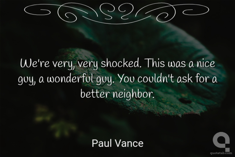 We're very, very shocked. This was a nice guy, a wonderful guy. You couldn't ask for a better neighbor.