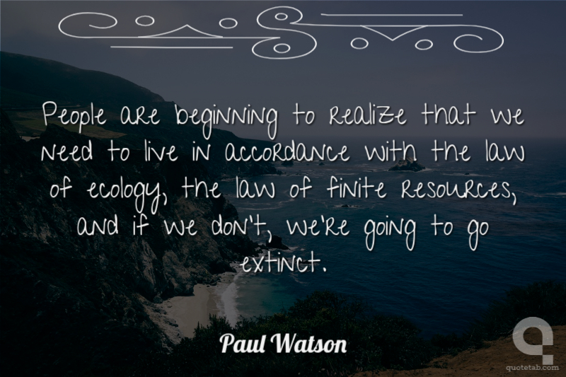 People are beginning to realize that we need to live in accordance with the law of ecology, the law of finite resources, and if we don't, we're going to go extinct.