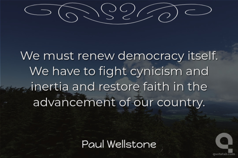 We must renew democracy itself. We have to fight cynicism and inertia and restore faith in the advancement of our country.