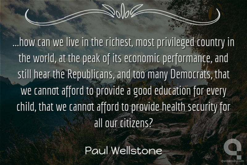 ...how can we live in the richest, most privileged country in the world, at the peak of its economic performance, and still hear the Republicans, and too many Democrats, that we cannot afford to provide a good education for every child, that we cannot afford to provide health security for all our citizens?