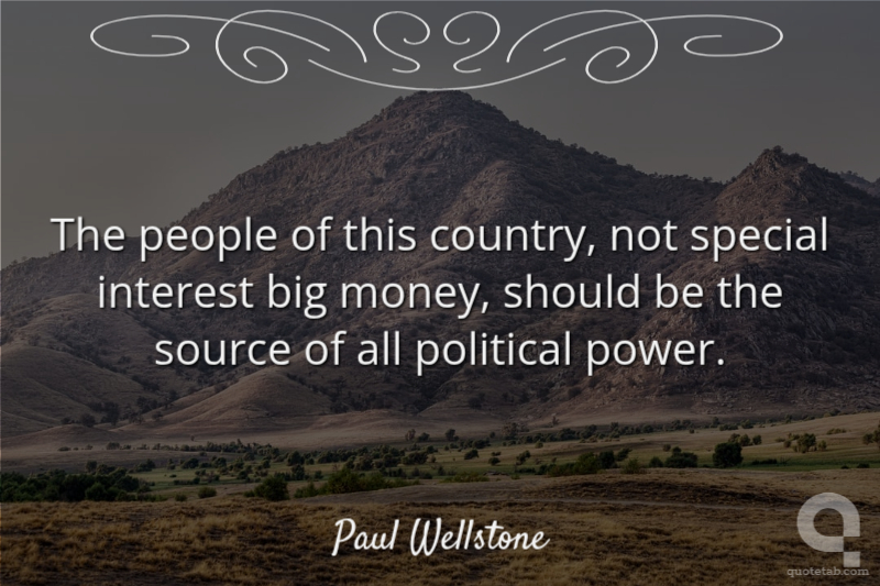 The people of this country, not special interest big money, should be the source of all political power.