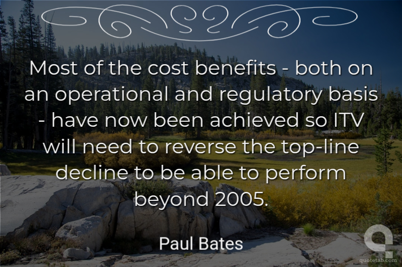 Most of the cost benefits - both on an operational and regulatory basis - have now been achieved so ITV will need to reverse the top-line decline to be able to perform beyond 2005.