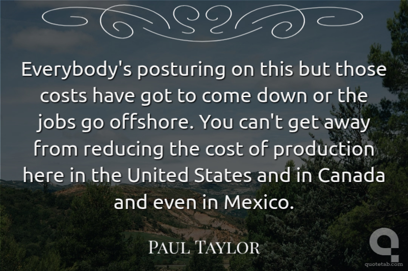 Everybody's posturing on this but those costs have got to come down or the jobs go offshore. You can't get away from reducing the cost of production here in the United States and in Canada and even in Mexico.