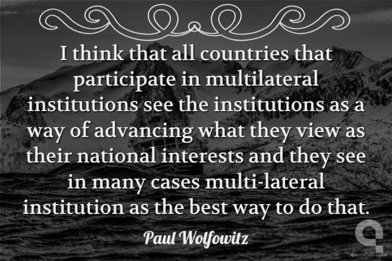 I think that all countries that participate in multilateral institutions see the institutions as a way of advancing what they view as their national interests and they see in many cases multi-lateral institution as the best way to do that.