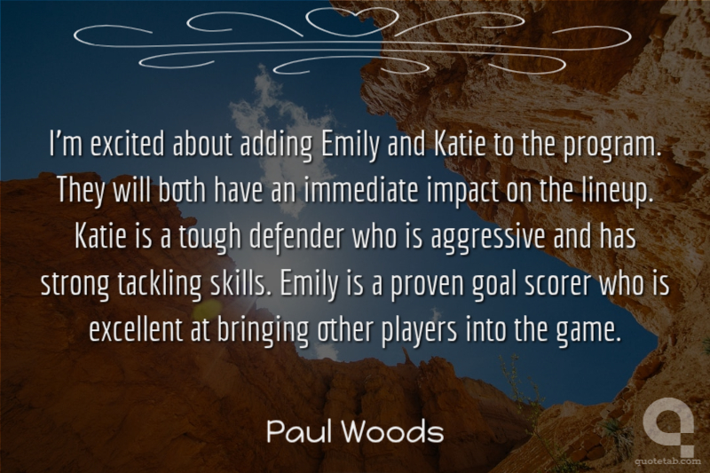 I'm excited about adding Emily and Katie to the program. They will both have an immediate impact on the lineup. Katie is a tough defender who is aggressive and has strong tackling skills. Emily is a proven goal scorer who is excellent at bringing other players into the game.