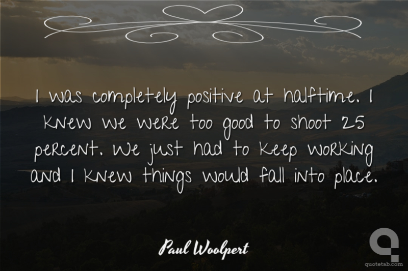 I was completely positive at halftime. I knew we were too good to shoot 25 percent. We just had to keep working and I knew things would fall into place.