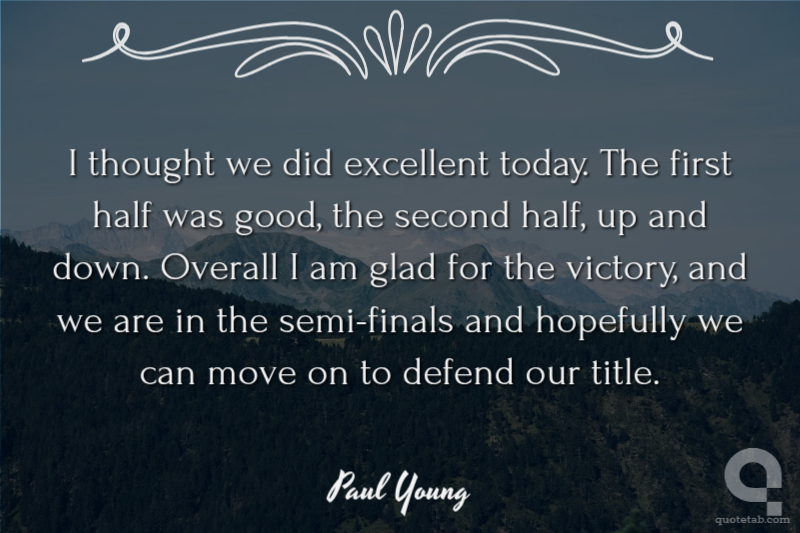 I thought we did excellent today. The first half was good, the second half, up and down. Overall I am glad for the victory, and we are in the semi-finals and hopefully we can move on to defend our title.