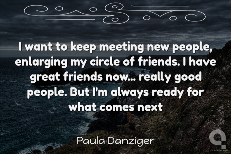 I want to keep meeting new people, enlarging my circle of friends. I have great friends now... really good people. But I'm always ready for what comes next