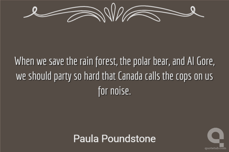 When we save the rain forest, the polar bear, and Al Gore, we should party so hard that Canada calls the cops on us for noise.