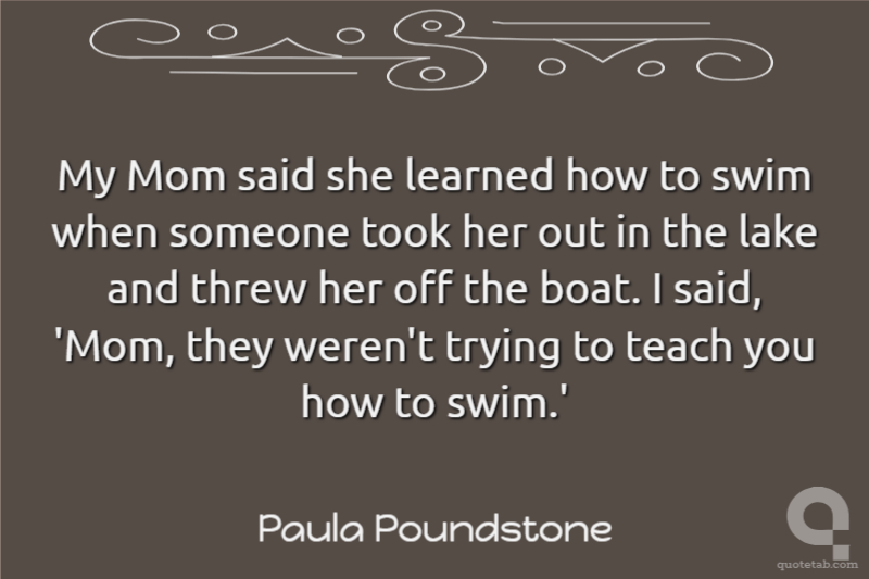 My Mom said she learned how to swim when someone took her out in the lake and threw her off the boat. I said, 'Mom, they weren't trying to teach you how to swim.'